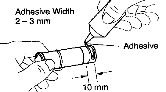 a) Apply adhesive to the end of the heater union as shown in the illustration.