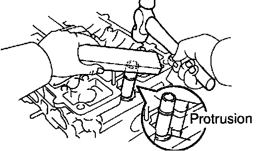 b) Using a wooden block and hammer, tap in a new heater union, leaving 48 mm (1.89 inch) protruding from the cylinder head.
