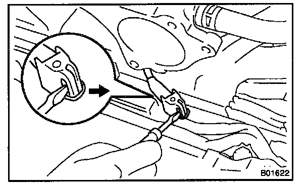 1. Using a screwdriver, lift up the lock claw and disconnect the holder from the ignition coils.