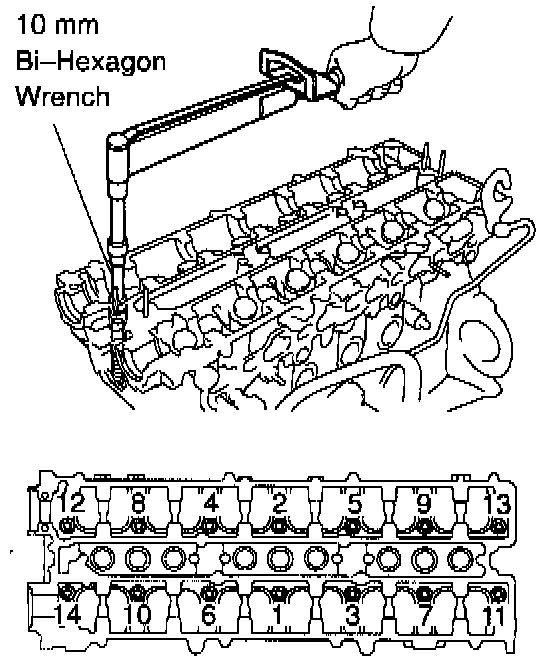 Retighten the cylinder head bolts 90° in the numerical order shown.