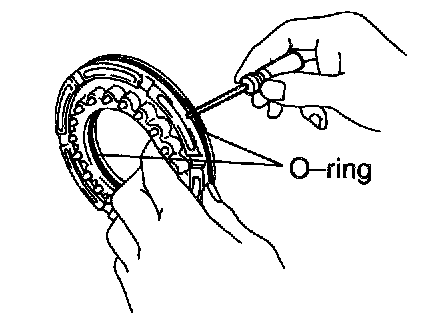 d. Using a small screwdriver, remove the 2 O-rings from the piston.