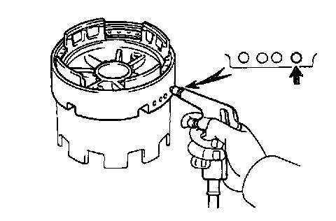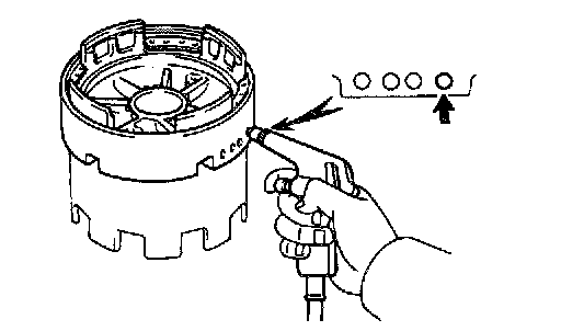 b. Apply compressed air (392 kPa, 4 kgf/cm2, 57 psi) into the oil passage and be sure that the O/D brake piston moves smoothly.