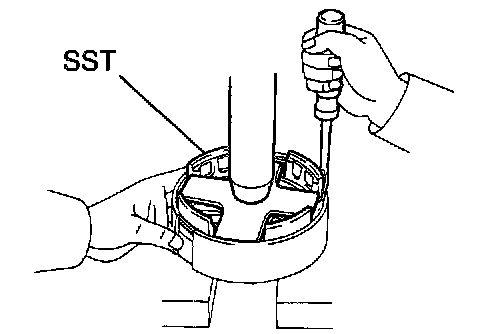 a. Place SST on the spring retainer, and compress the return spring with a press.