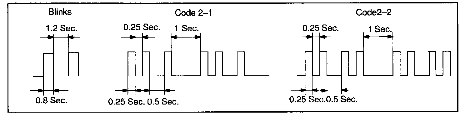 - When key code registration could not be performed in the automatic registration mode, code 2-1 is output from the security indicator and when inserting the already registered key, code 2-2 is output.