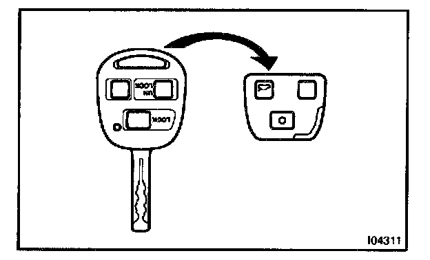 NOTE: In case of replacing ignition cylinder and key set, door locks cannot be opened with new ignition keys. Therefore, to avoid any trouble caused by empty battery of transmitter of new ignition key, please bring the original key while driving.