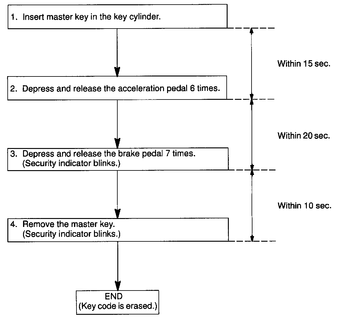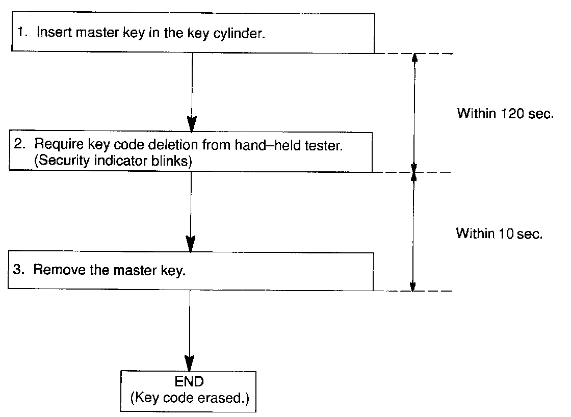 HINT: When the key cannot be pulled out in the step 3, key code deletion is canceled. (Security indicator is OFF.)