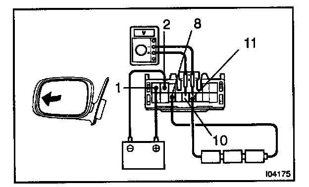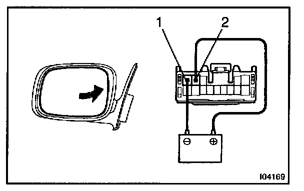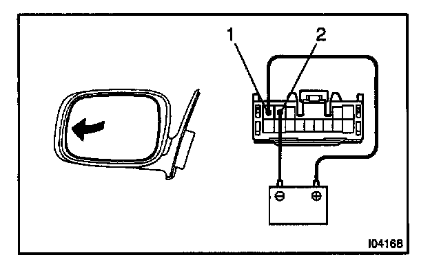 a. Connect the positive (+) lead from the battery to terminal 1 and the negative (-) lead to terminal 2, and check that the mirror turns to the left side.