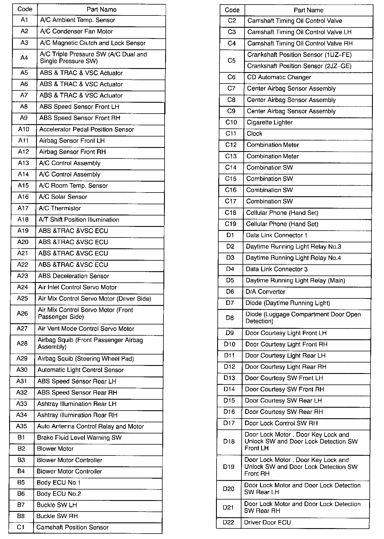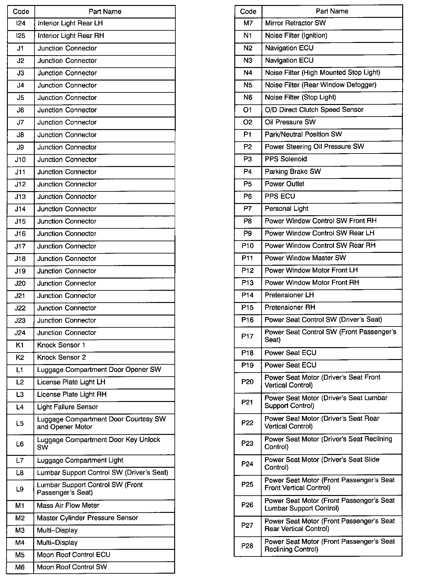 Connector Code Lists