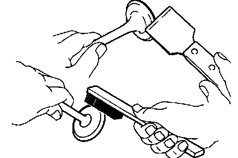 b) Using a wire brush, thoroughly clean the valve.
