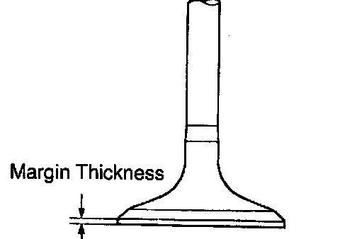 If the margin thickness is less than the minimum, replace the valve.