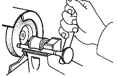 Apply a light coat of prussian blue (or white lead) to the valve face. Lightly press the valve against the seat. Do not rotate valve.
