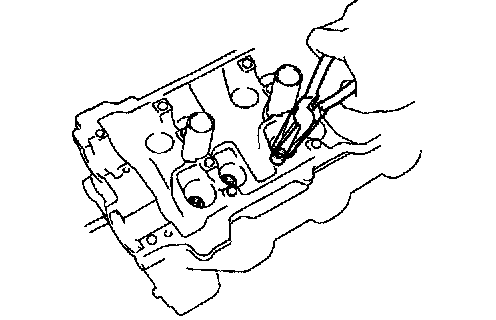 a) Using SST, compress the valve spring and remove the 2 keepers.