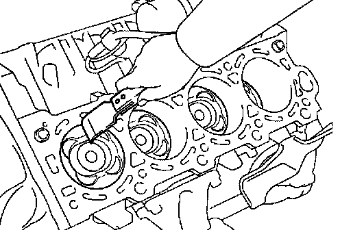 c) Using a valve guide bushing brush and solvent, clean all the guide bushings.