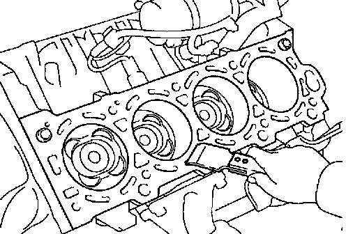 b) Using a gasket scraper, remove all the gasket material from the cylinder block surface.