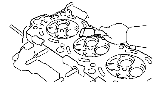 Using a dye penetrant, check the combustion chamber, intake ports, exhaust ports and cylinder block surface for cracks.