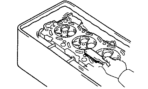 d) Using a soft brush and solvent, thoroughly clean the cylinder head.