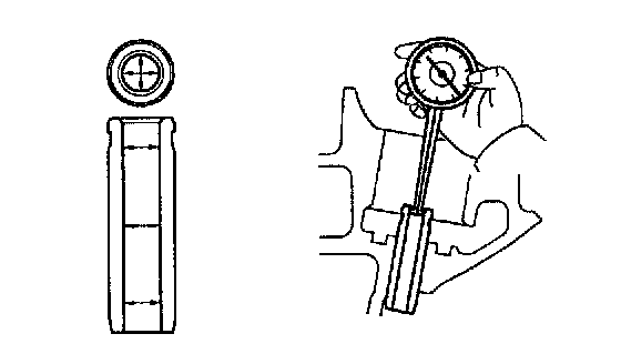 (1) Using a micrometer, measure the journal diameter for the camshaft bearing.