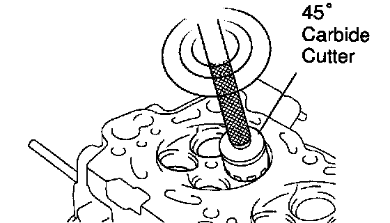 a) Using a 45° carbide cutter, resurface the valve seats. Remove only enough metal to clean the seats.