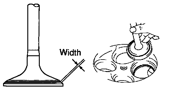 - Check that the seat contact is in the middle of the valve face with these width: 1.0 - 1.4 mm (0.039 - 0.055 inch)