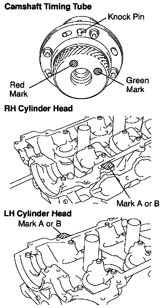 - There are 2 sizes of the camshaft timing tube journal diameter, green and red marks accordingly. The mark is on the face of the camshaft timing tube.