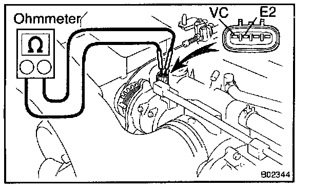 b. Using an ohmmeter, measure the resistance between terminals VC and E2.