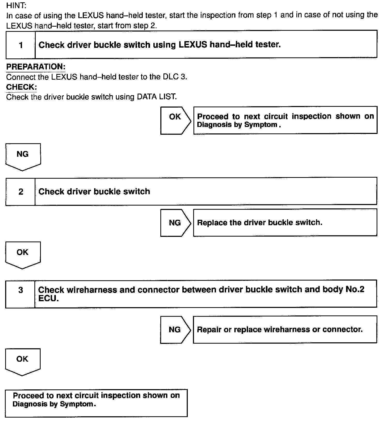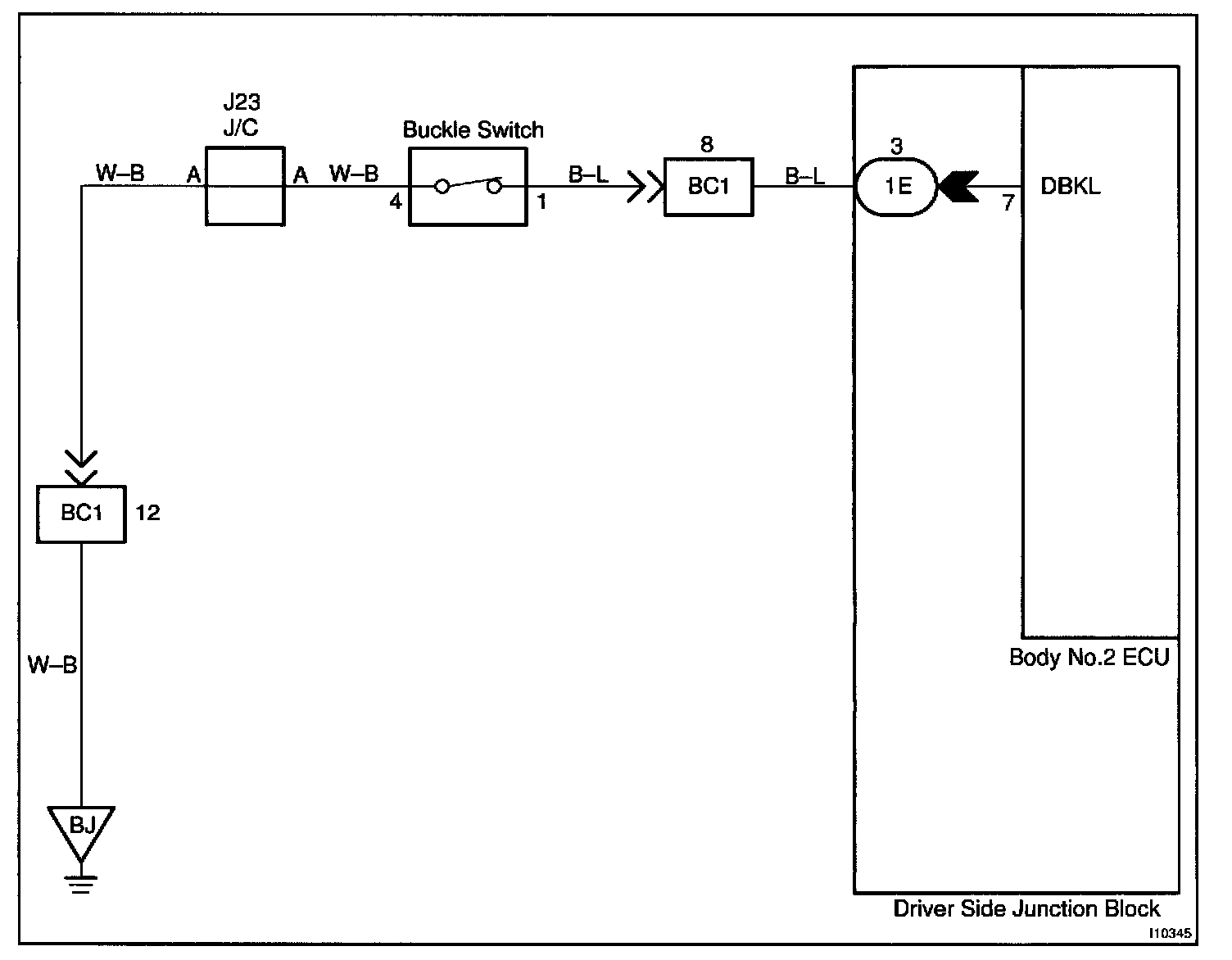 Driver Buckle Switch Circuit / Body No.2 ECU