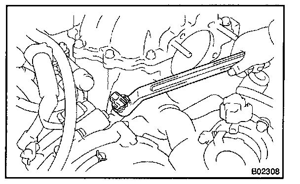 b. Using an ohmmeter, check that continuity exists between the terminals when the coolant temperature is below 91 °C(196 °F).