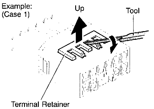 HINT: To remove the terminal from the connector, please construct and use the special tool or like object shown on the left.