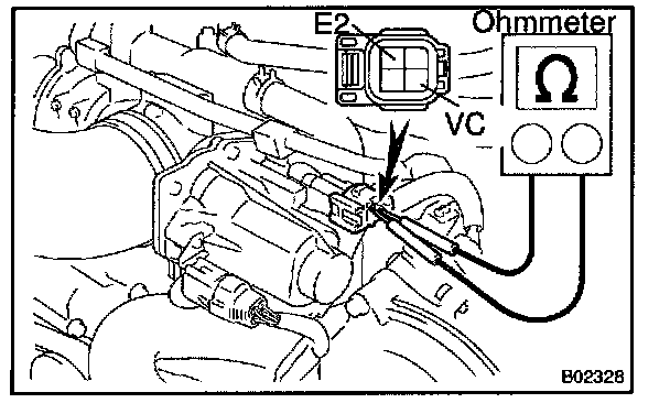 b. Using an ohmmeter, measure the resistance between terminals VC and E2.