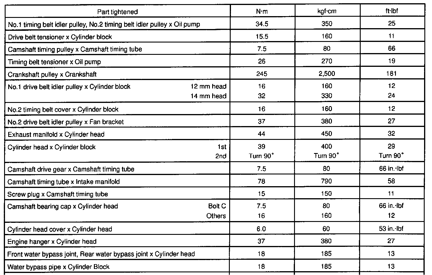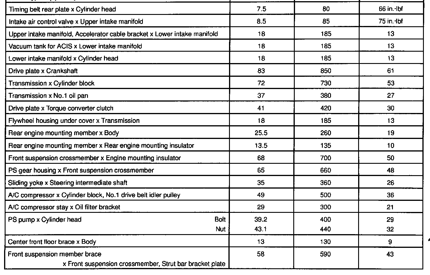 1UZ-FE Engine Mechanical Torque:
