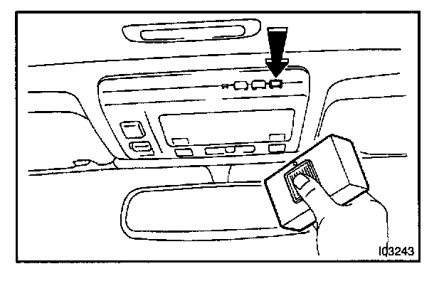 b. In the condition of (a), bring the original transmitter to within 1-inch area around the garage door opener and press the switch. (code transmitting).
