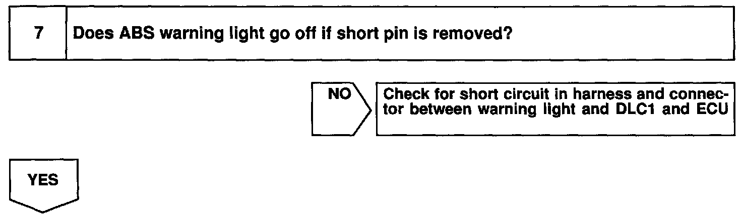 After removing the short pin of the DLC1, connect terminals Tc and E1 of the DLC1 to make the ABS warning light blink and output the DTC.