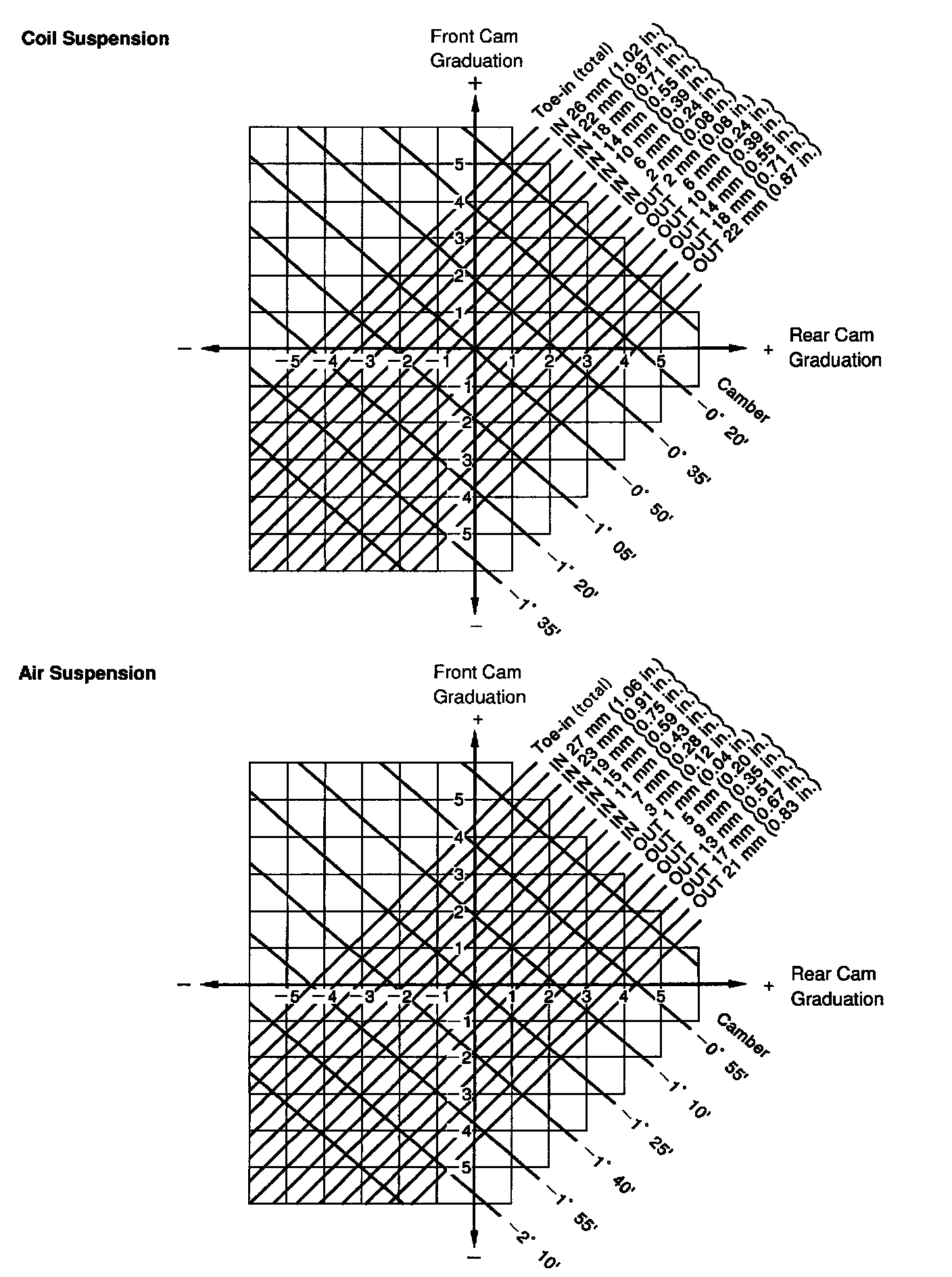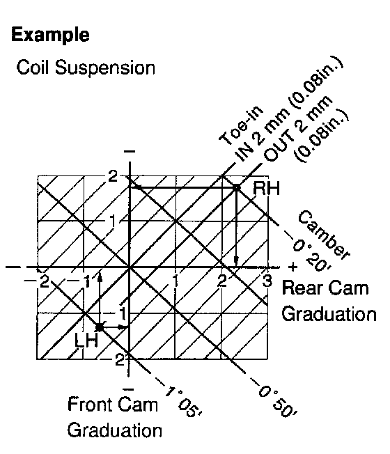 b. As shown in the illustration, from the graph the amounts by which the front and/or rear cam are to be adjusted.