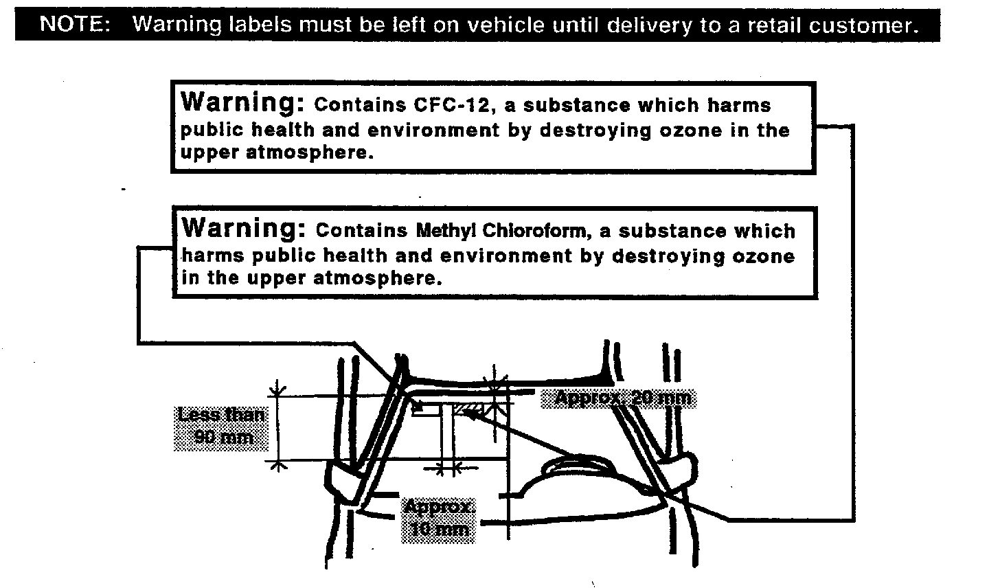 ^ Vehicles equipped with R-12 refrigerant gas A/C systems will also have the CFC-12 label applied at the manufacturing plant.