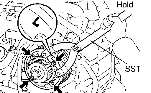 c. Using SST, install the 4 pulley bolts.