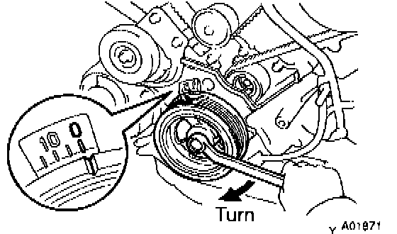 a. Turn the crankshaft pulley and align its groove with timing mark "0" of the No.1 timing belt cover.