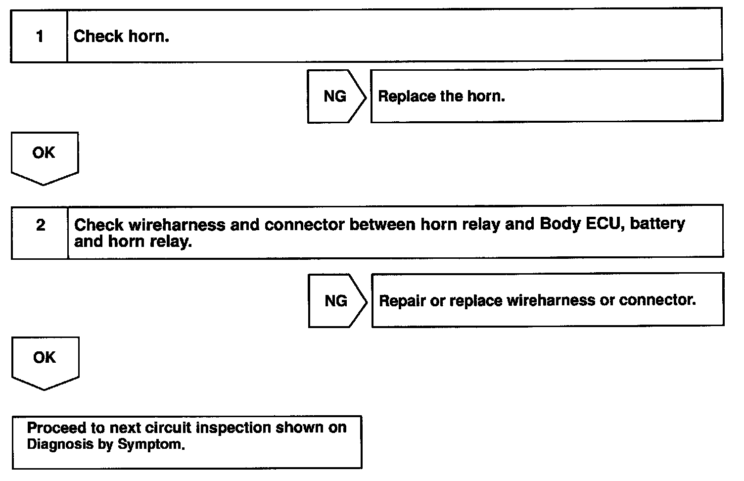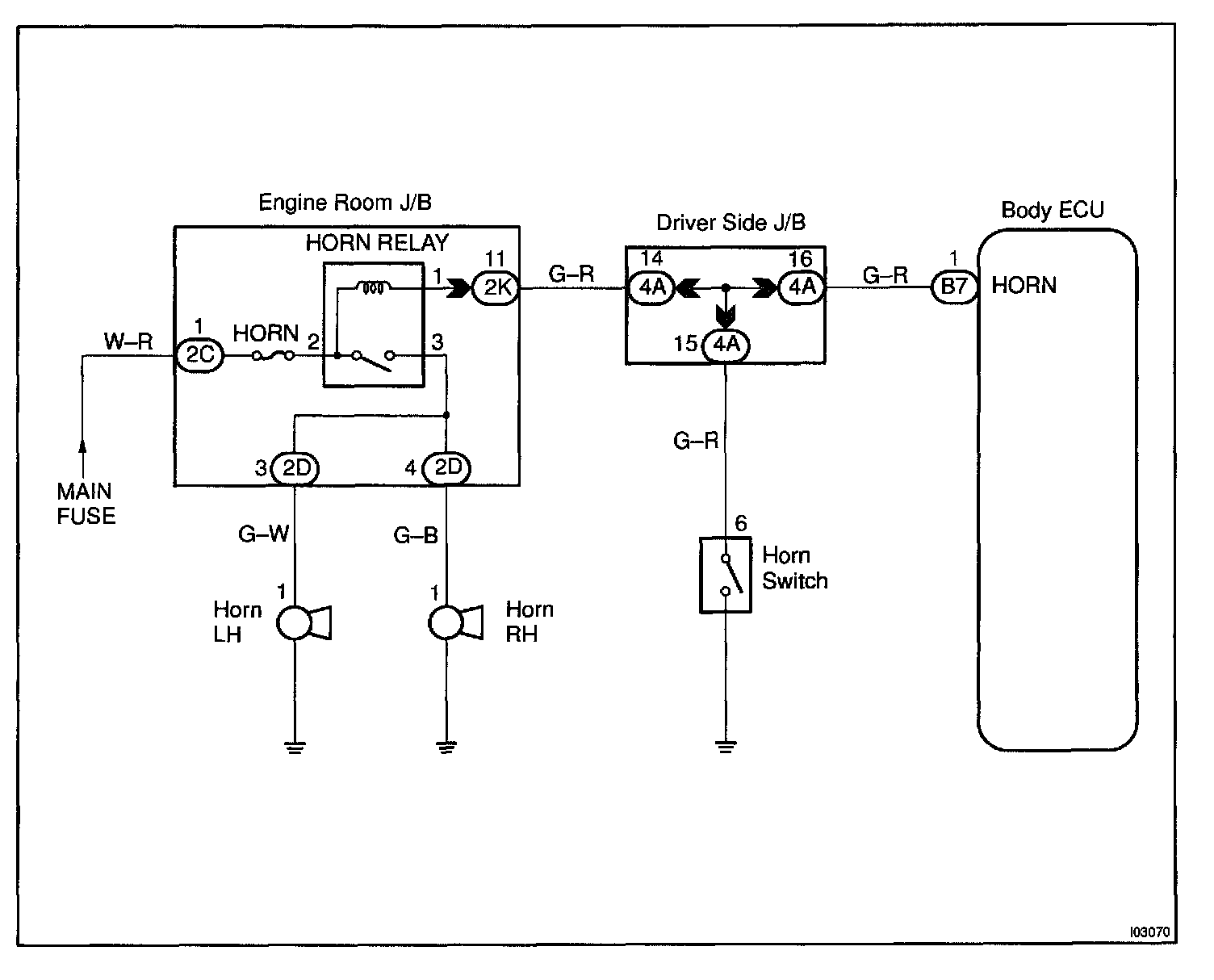 The horn is connected to the Body ECU and activated by the Body ECU during warning of the theft deterrent system.