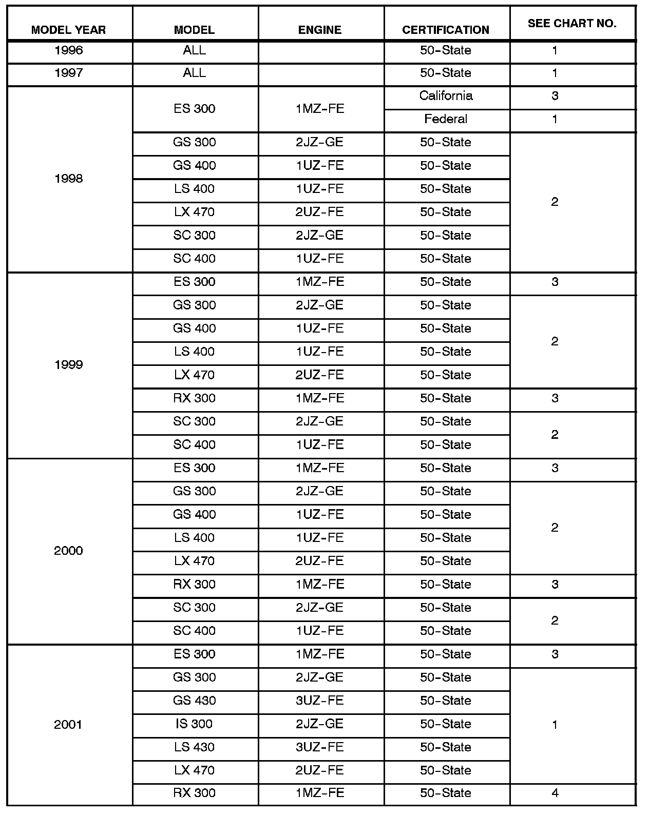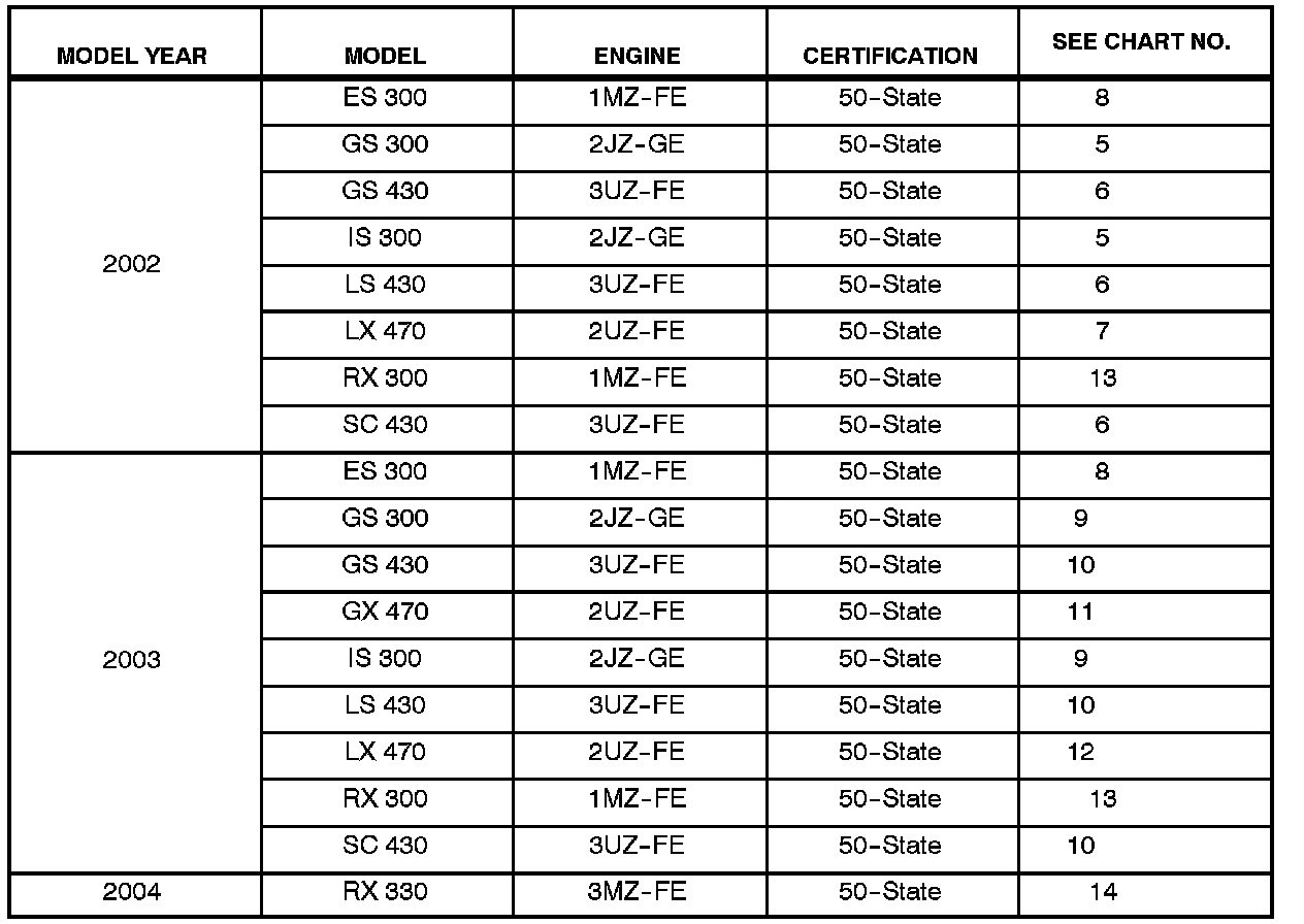 ^ All 1996 - 2003 model year Lexus vehicles.