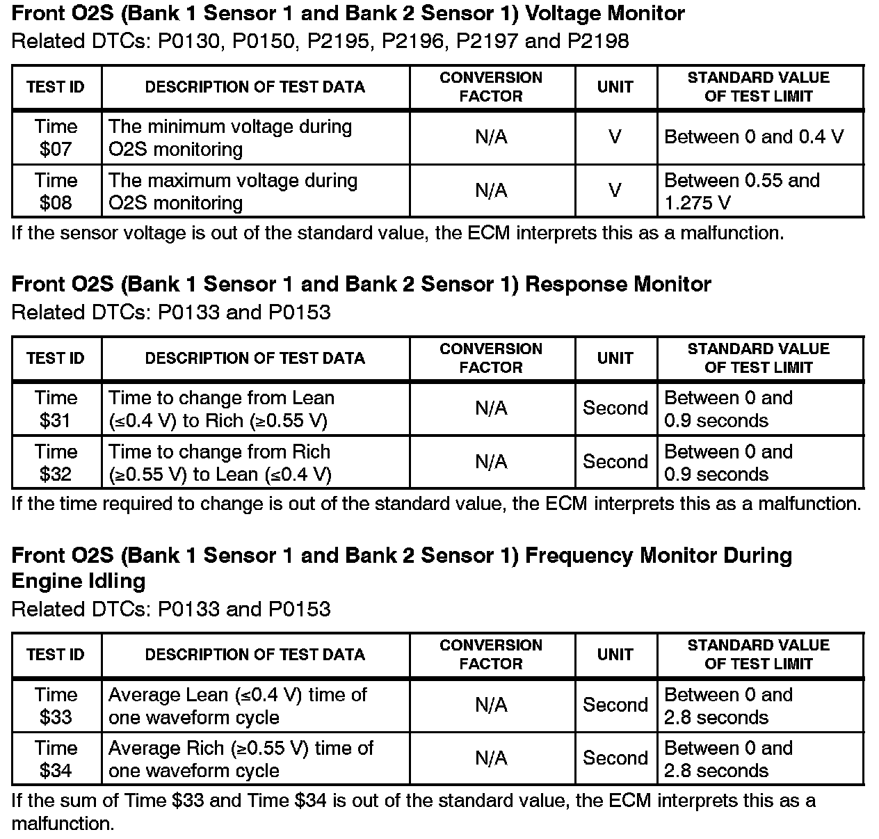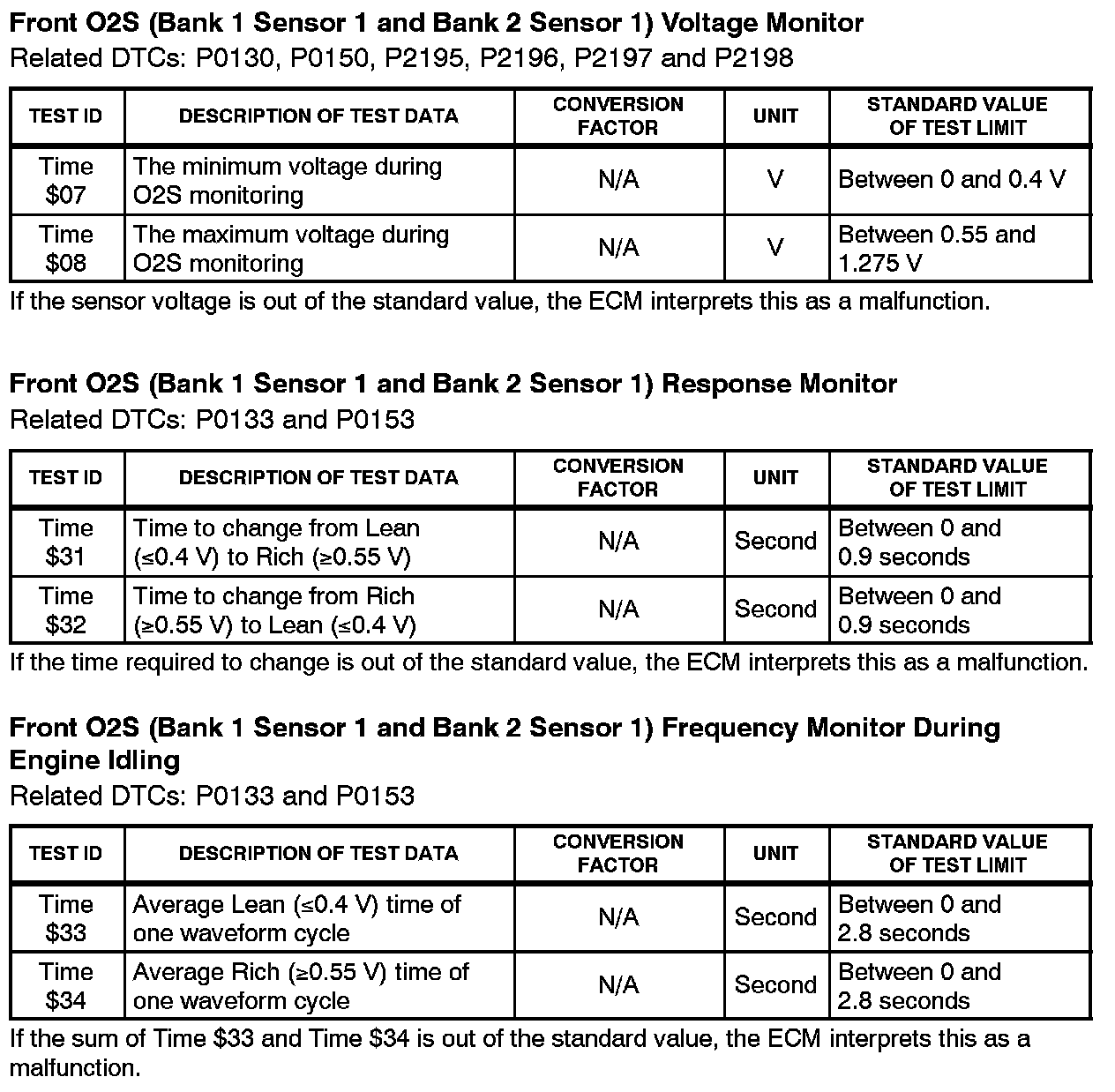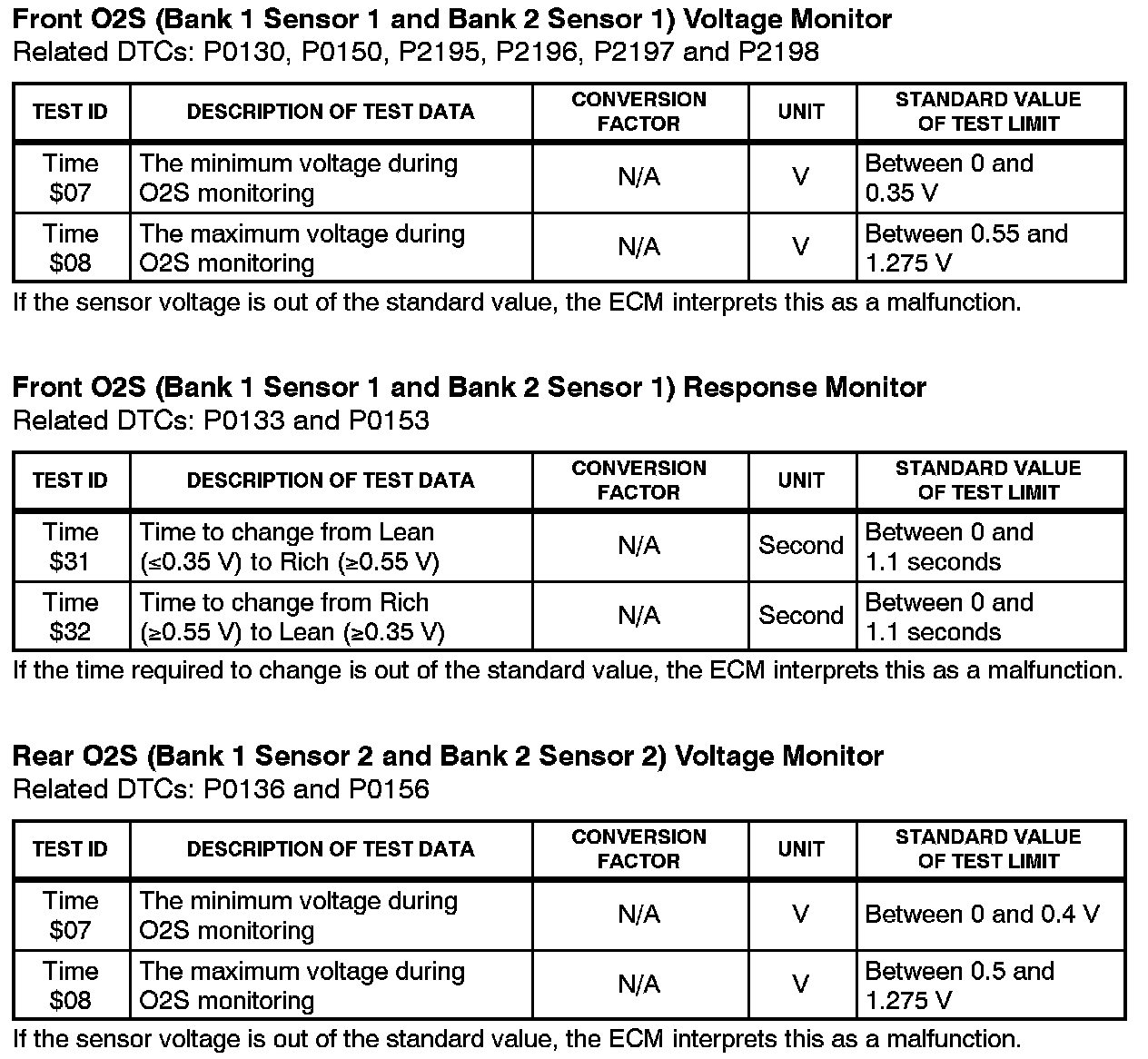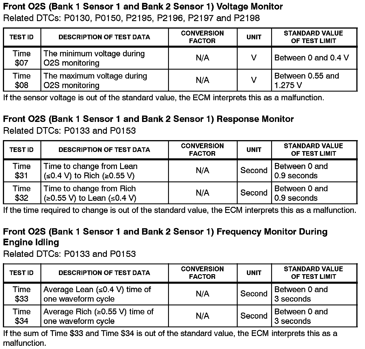 Engine Controls - O2 Sensor Monitor Threshold Values