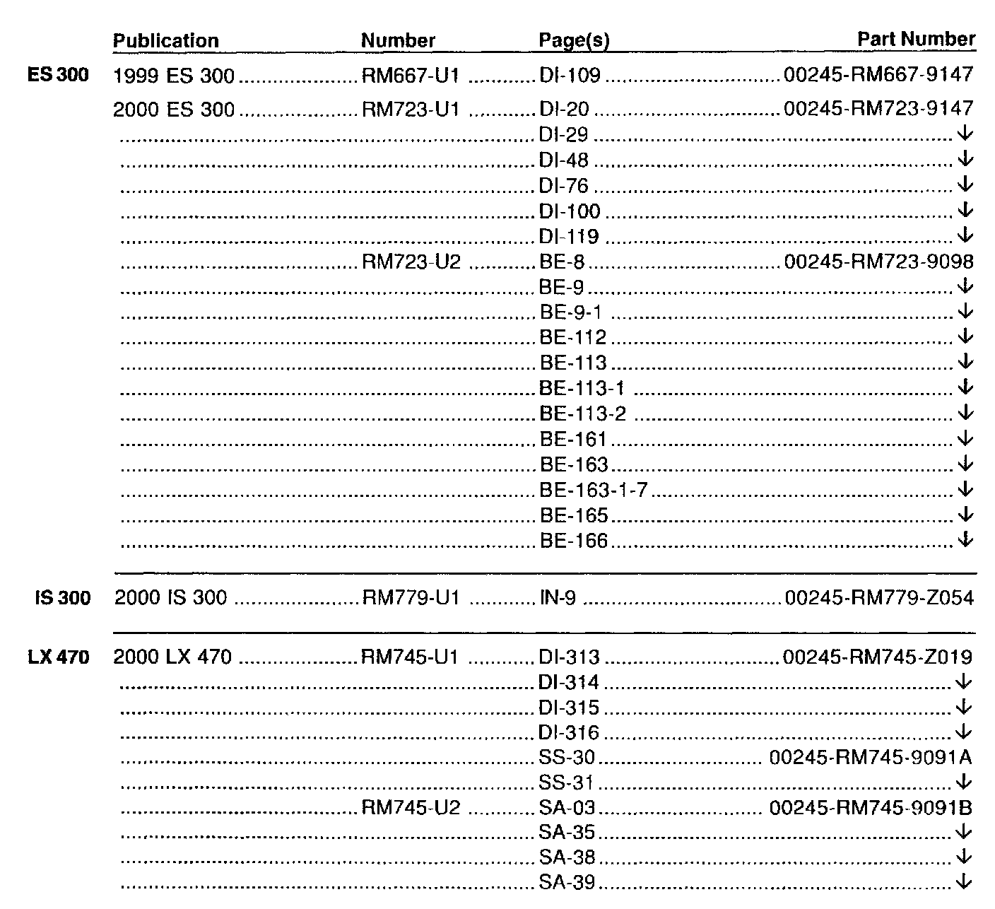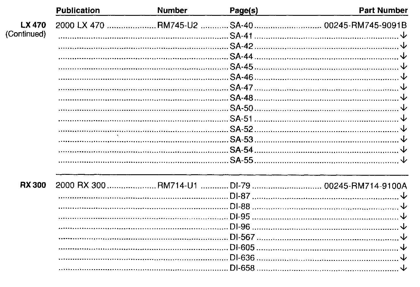 Correction Pages are available through the Dealer Support Material Network (MDC NPM System) via the corresponding part numbers from the following table: