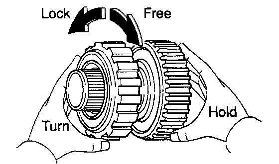 b. Hold the rear planetary ring gear and turn the one-way clutch.
