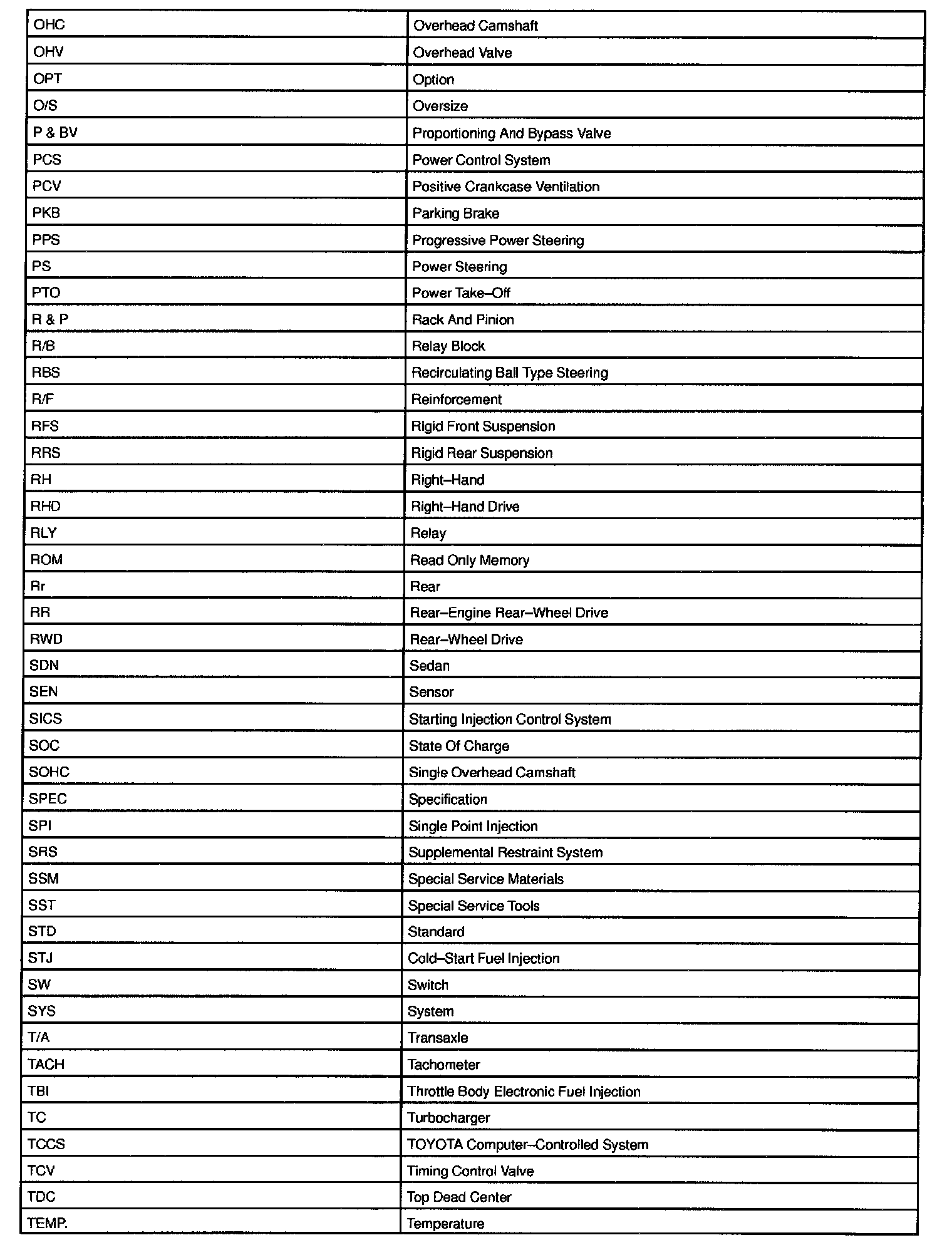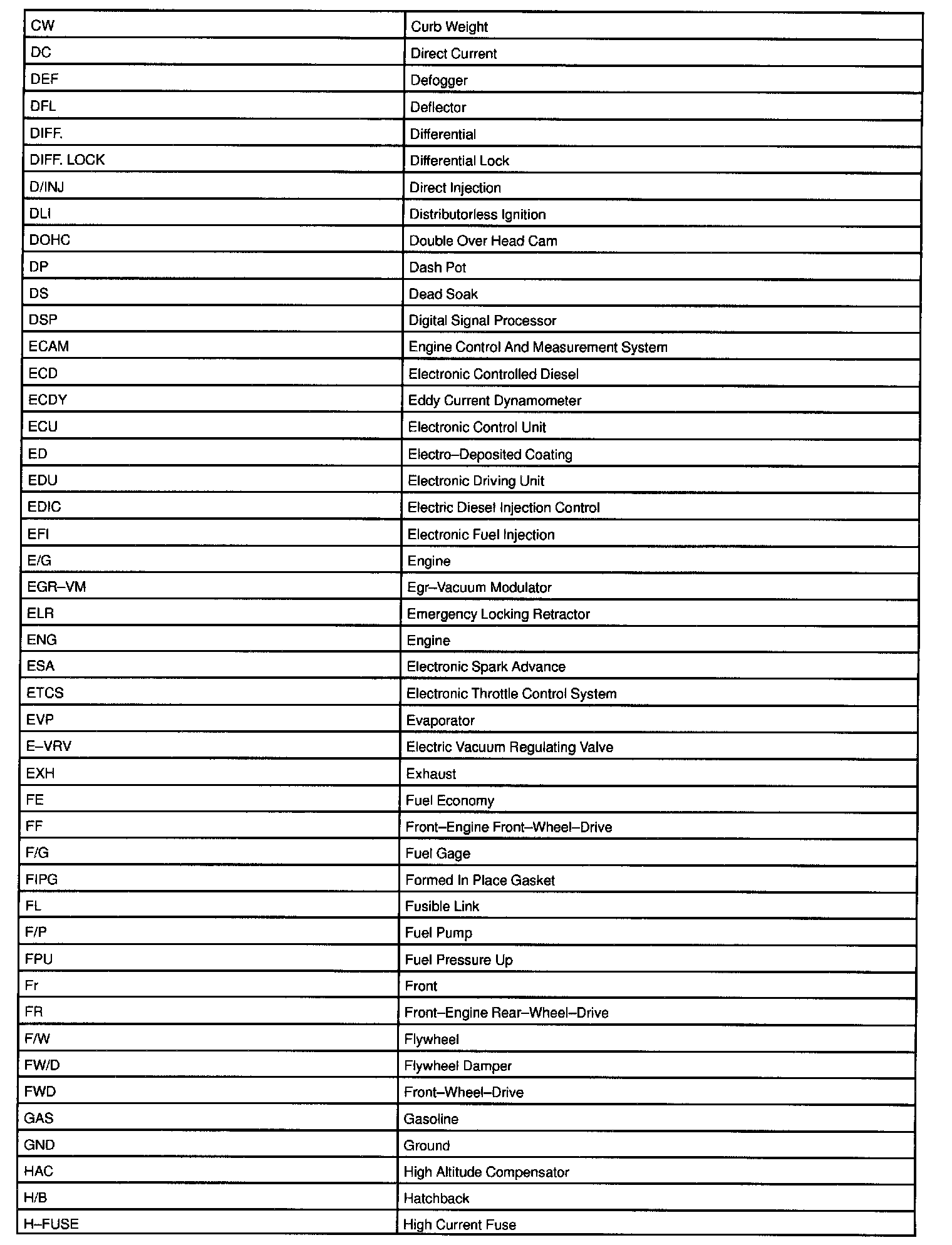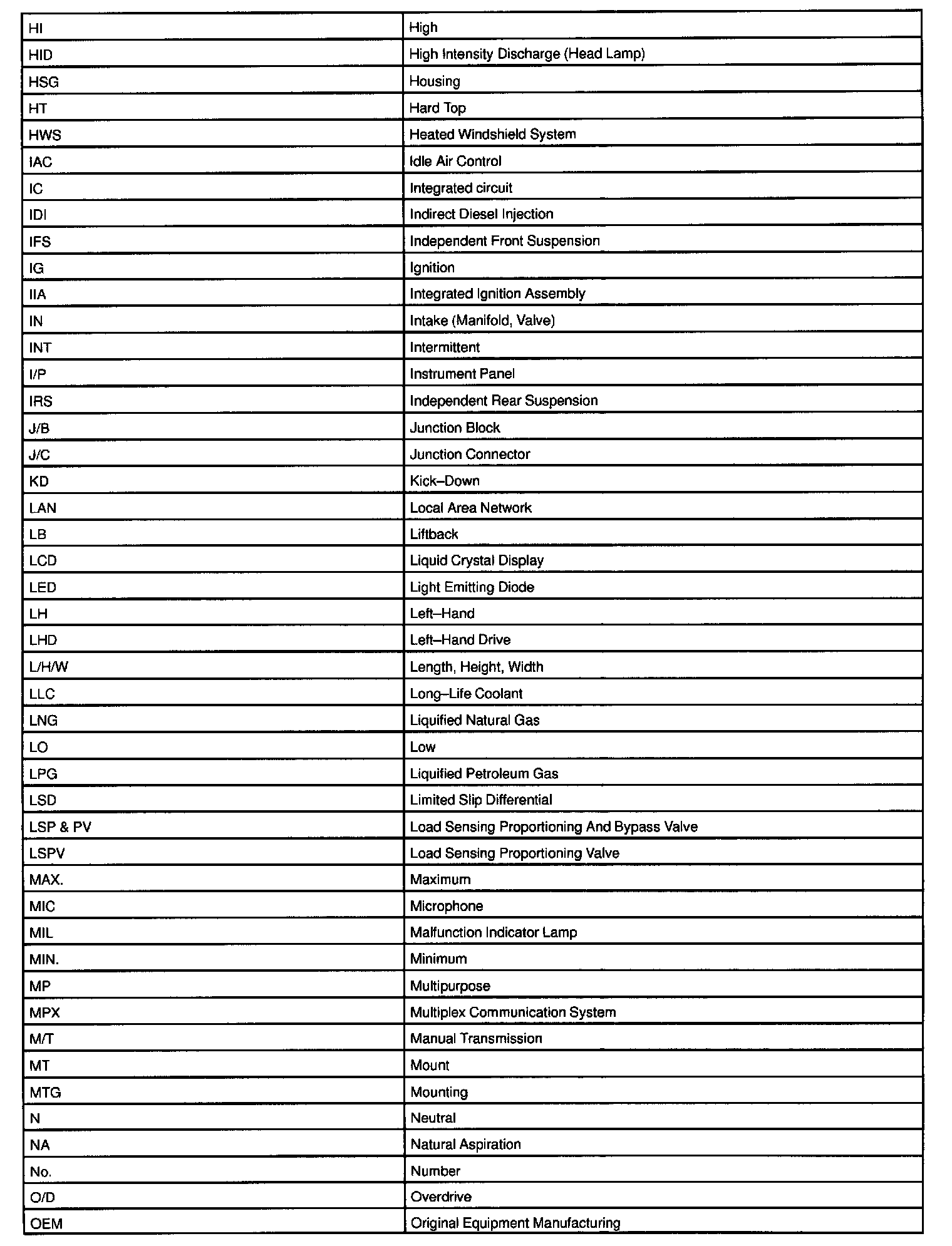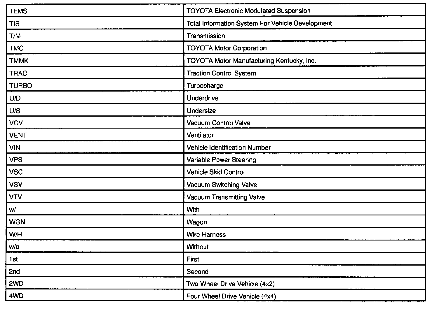 Abbreviations Used By LEXUS