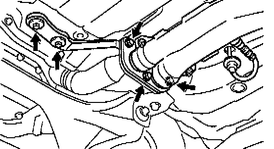 b) Remove the 3 bolts and nuts holding the front exhaust pipe to the exhaust manifold.