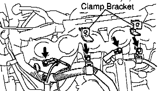 h) Disconnect the 2 engine wire clamps from the clamp brackets on the intake manifold.