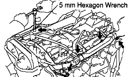 k) Using a 5 mm hexagon wrench, remove the bolt holding the engine wire protector to the No.2 cylinder head cover.
