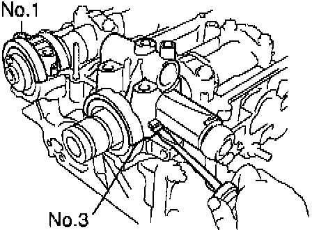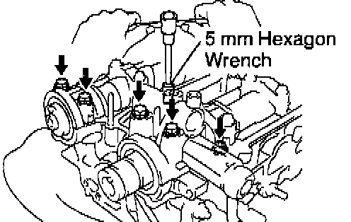 a) Using a 5 mm hexagon wrench, the 2 No.3 camshaft bearing cap bolts.