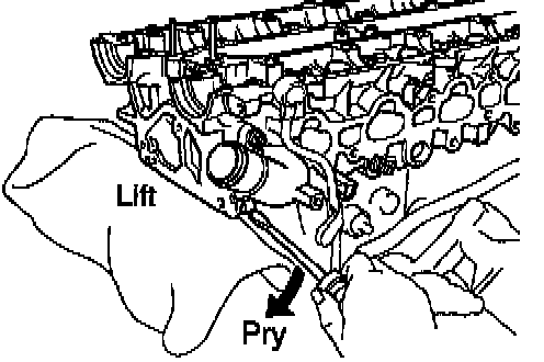 If the cylinder head is difficult to lift off, pry with a screwdriver between the cylinder head and block projection.