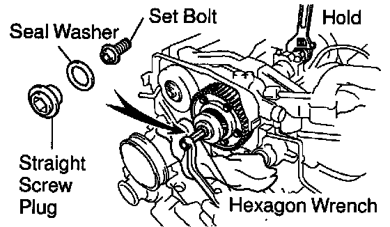 e. Using a 14 mm hexagon wrench, install the straight screw plug with the seal washer to the set bolt.