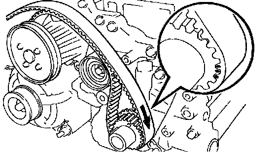 HINT: When re-using timing belt: Align the matchmarks of the crankshaft timing pulley and timing belt, and install the belt with the arrow pointing in the direction of engine revolution.