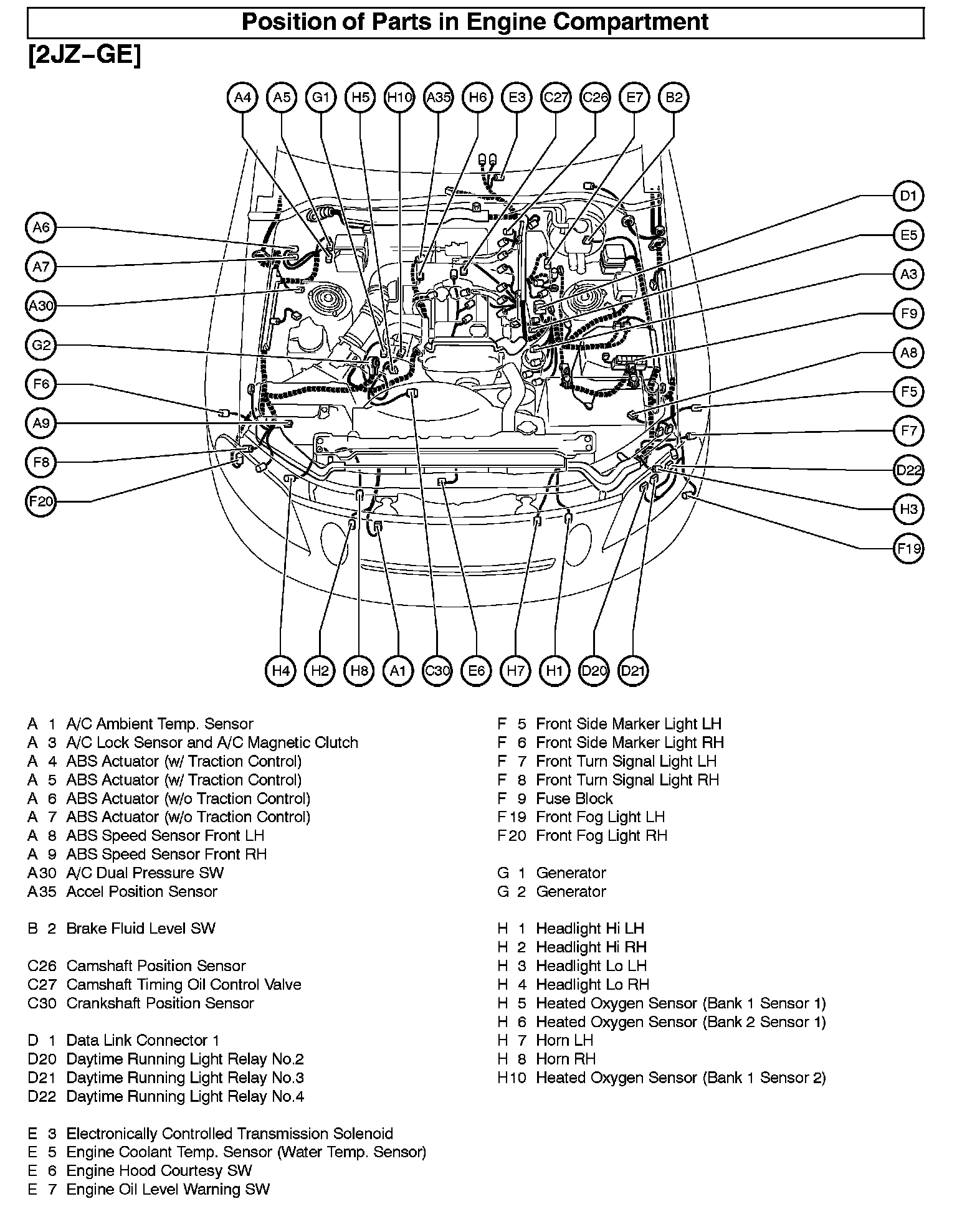 Position Of Parts In Engine Compartment (2JZ-GE):